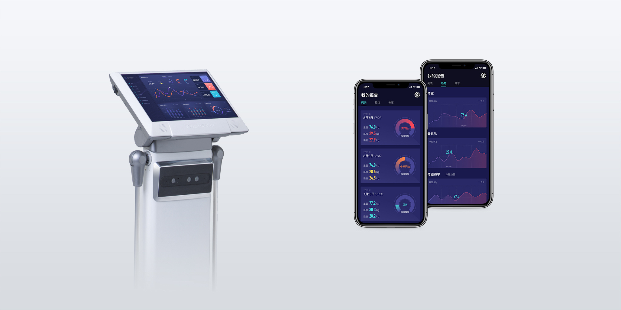 移動端/PC端/大屏幕端可隨時查看體測數據,全面數據化